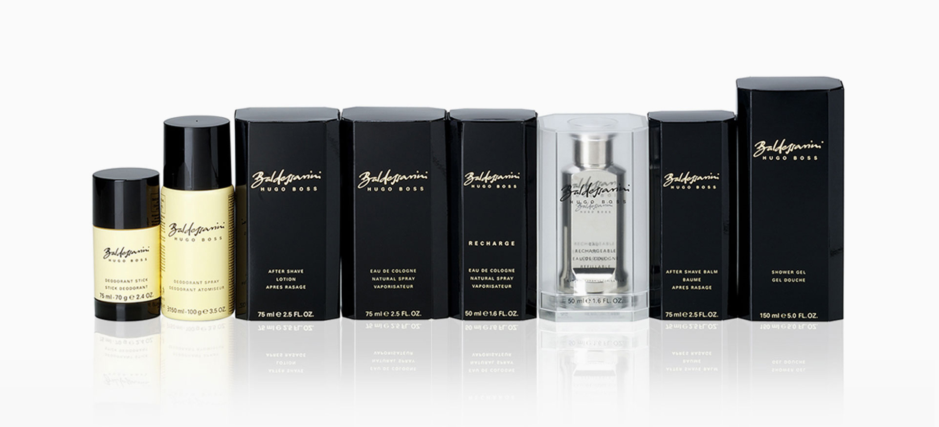 The design of this upscale luxury brand conveys mature masculinity within the spirit of the man’s world. The statuary design with heavy glass flow was developed including a refill system.