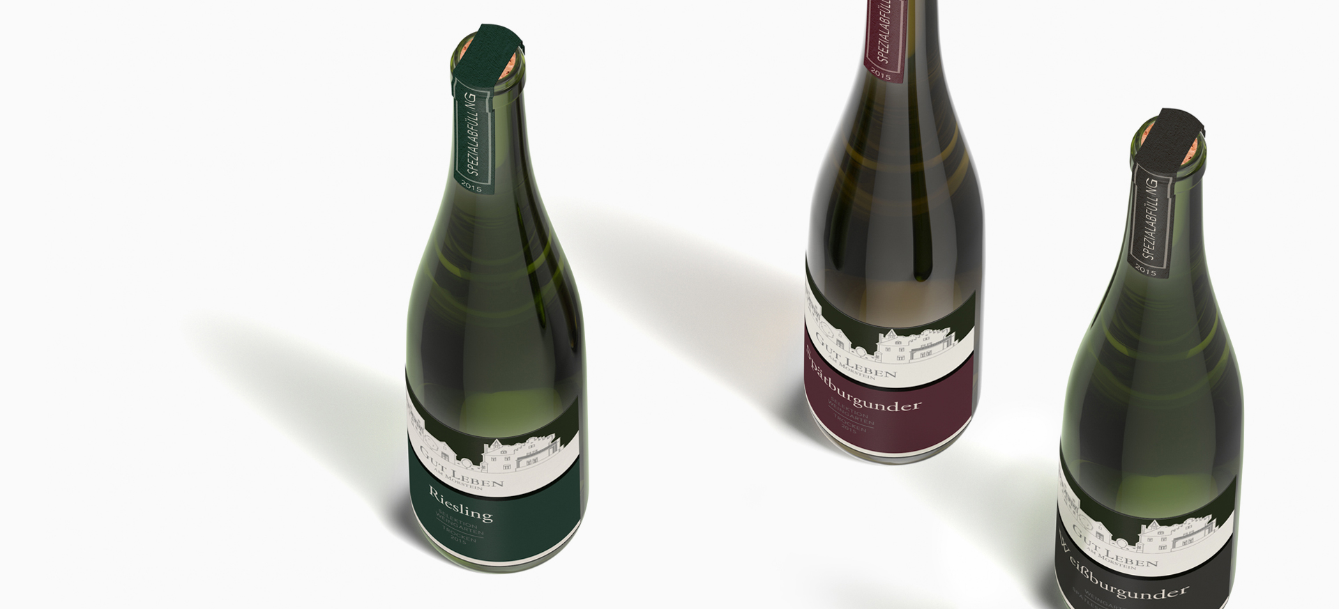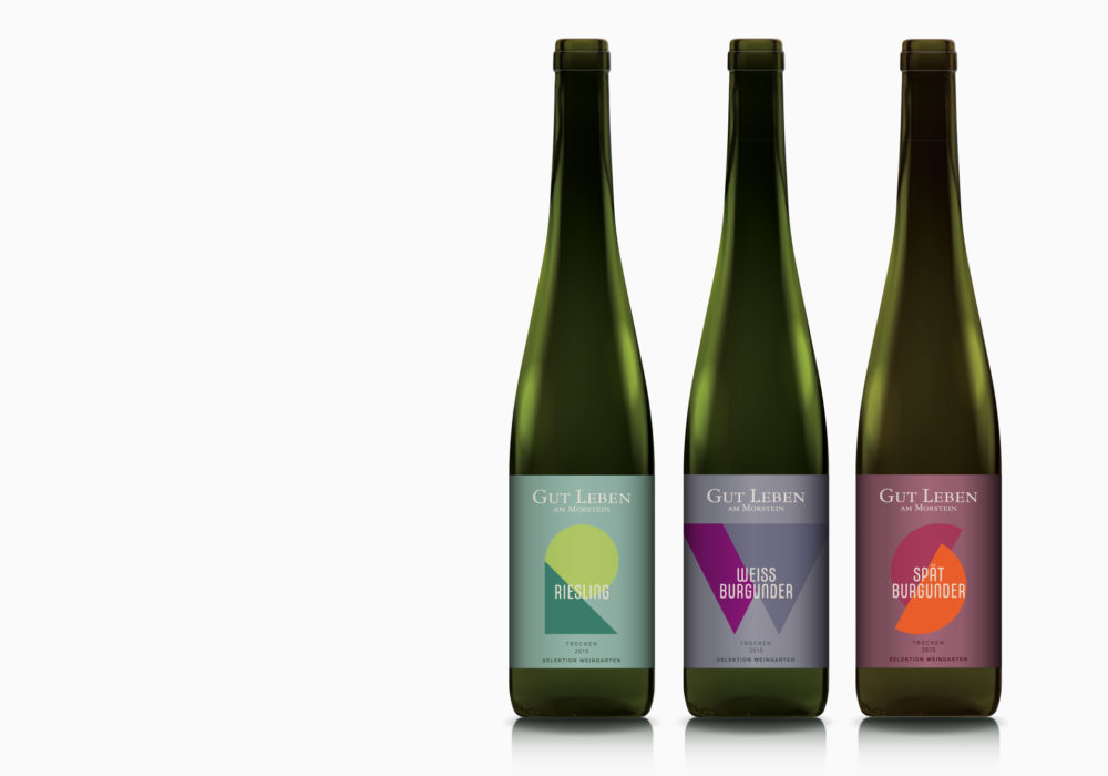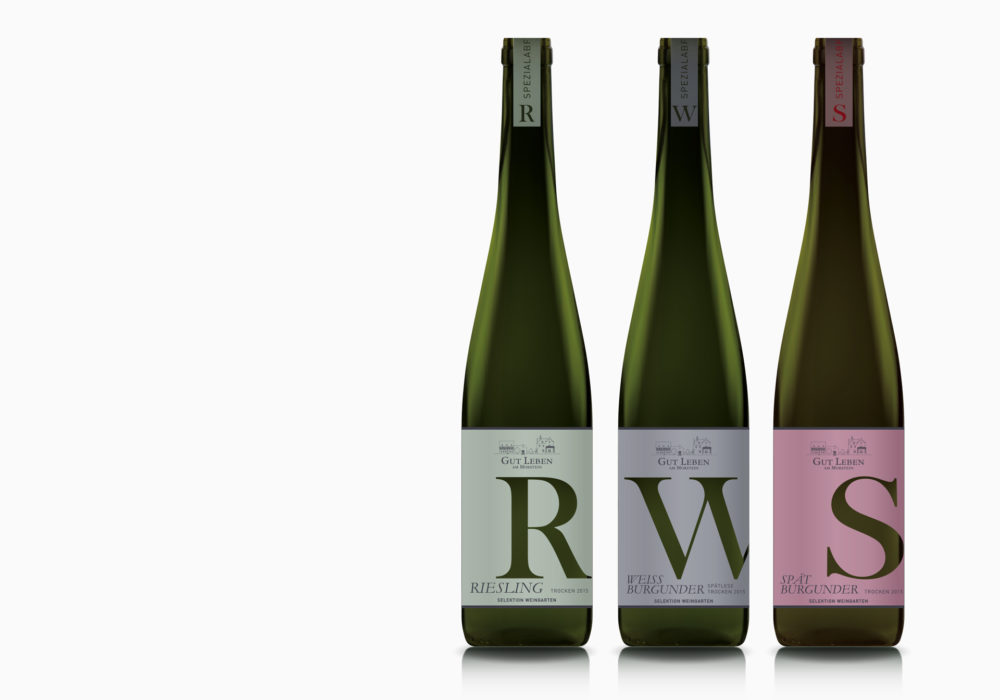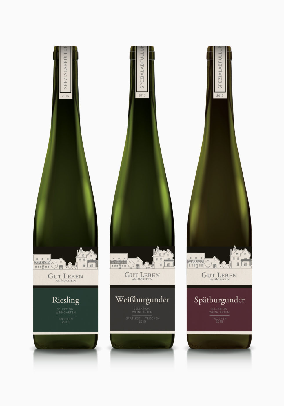 The own gastronomy offers culinary of the region; also the best wines. Together with winemakers of the region “GUT LEBEN am Morstein” has now selected the best and bottled them. We have designed the labels and outfit for this initiative. The selected graphic incorporates the logo with the authentic location (villa and remaining buildings) and depicts it as a silhouette at the top.