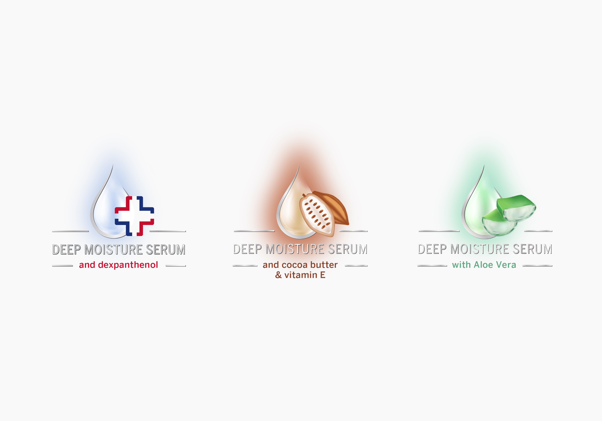 The relaunch strengthens and further develops this range. The new graphic design not only reflects the Nivea brand codes but also the Body Care category codes; strengthening the revised positioning and range variety. The drop shape – an iconic element and focus point – is a design between reality and abstraction.