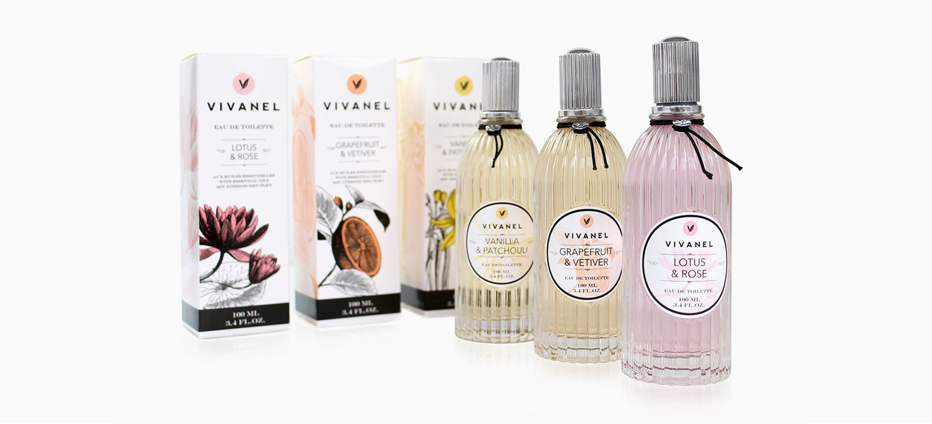 The newly developed brand is a modern statement. It stands for competence and carries a V shaped like a leaf. This associates both naturalness and fragrance. Three different herb illustrations with watercolor effects represent the different scents.