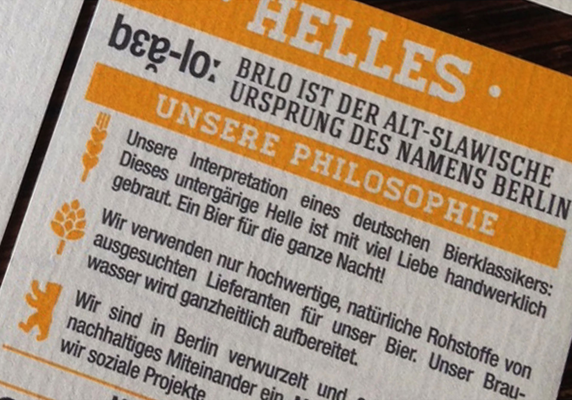 Die Identität zeigt die handwerkliche Qualität mit hochwertigen Inhaltsstoffen aus dem Bioanbau und den drückt den Zeitgeist einer modernen, coolen und wahren Berliner Marke aus. Die Form des Namens BRLO ist der slawische Ursprungsname Berlins.