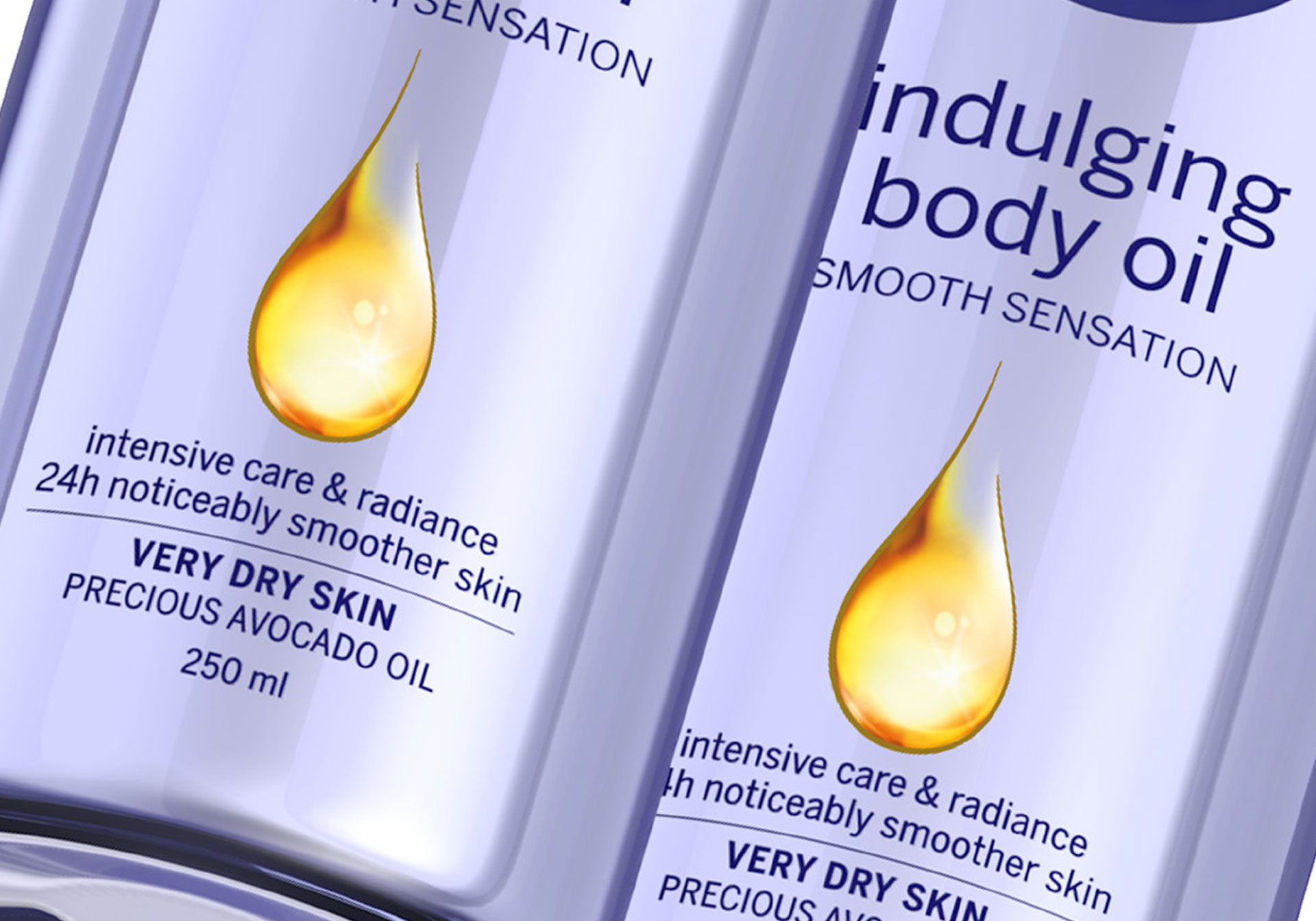 Nivea Smooth Sensation Body Oil, das pure und besonders intensive Pflegeöl nährt und beruhigt trockene und gestresste Haut. Das Design ist ikonisch und minimalistisch, gleichzeitig emotional ansprechend und einnehmend.
