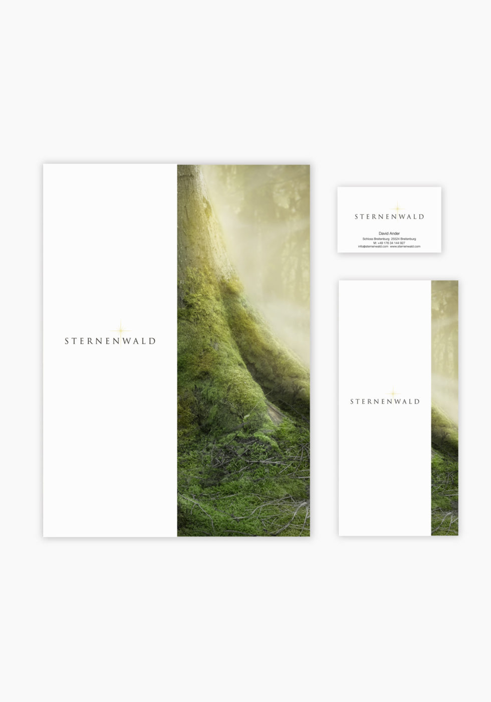 Design einer Wort- und Bildmarke, sowie die Geschäftsausstattung für Sternenwald, einem Begräbniswald in Schleswig-Holstein