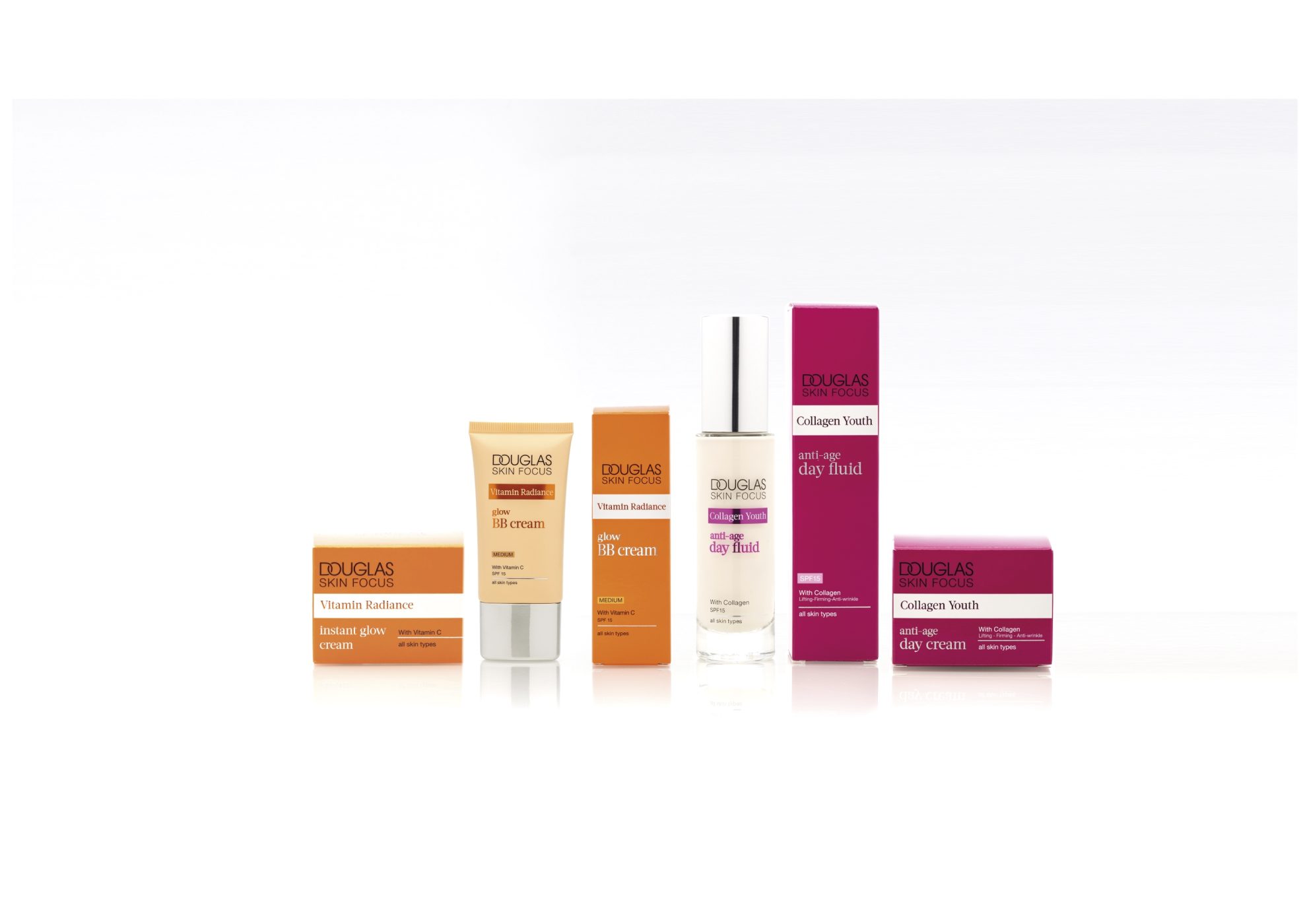 Jedes Produkt ist rundum gestaltet: hier Vitamin- und Anti-Age-Produkte.