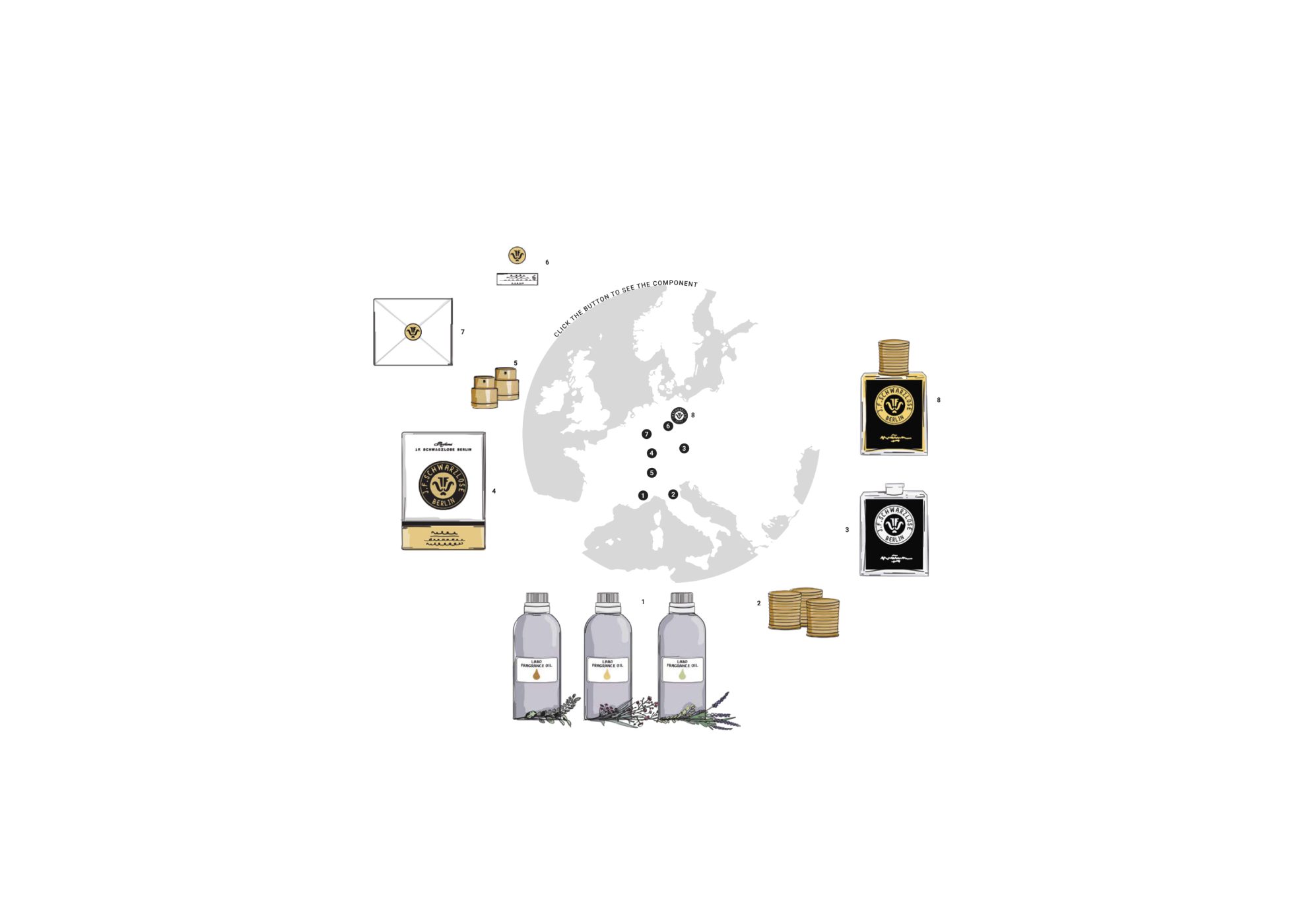 Die weiteren Linienerweiterungen der großen Flakons, die jeweils ein authentisches Etikett tragen, das mit den Zutaten und der individuellen Geschichte verknüpft ist.