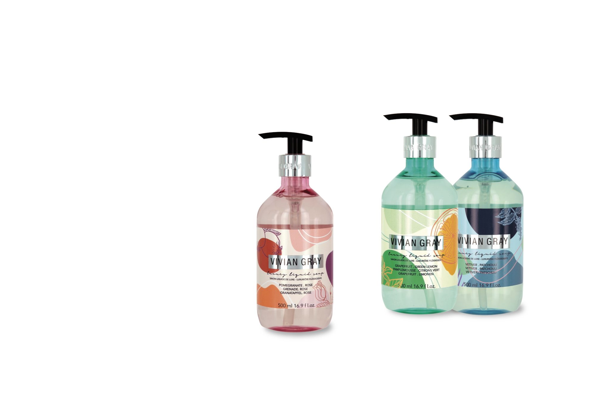 Eine neue Pflegeserie von Vivian Grey, hergestellt aus rein natürlichen Inhaltsstoffen inszeniert durch fröhliche, inspirierende Grafiken und Farben. Die Formgebung basiert dazu kontrastierend auf traditionellen Laborgefäßformen.